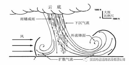 范围小而强度很大的下冲气流称为微下冲气流。这种猛烈的下冲气流,持续时间很短,时速则高达200千米以上。它先是由空中垂直下冲逼近地面,然后呈辐射状向水平方向散布开来。飞机一旦遭其袭击便任其摆布而无法保持机体平衡。